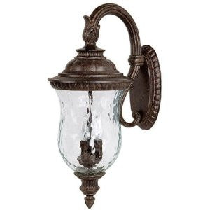 This outdoor wall fixture is finished in tortoise Hammered glass shade is included with this fixture Equipped with a 1 year warranty backed by Cambridge lighting Uses (3) 60w candelabra base bulbs Easy installation, all mounting materials included