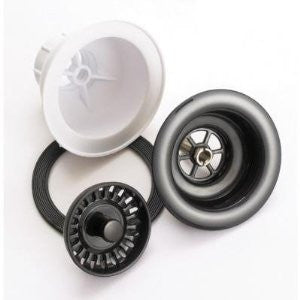 Fits 3-1/2-Inch opening Basket strainer with basket Metallic black finish Removable Easy installation