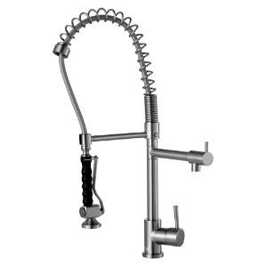 Spout height: 27-Inch - spout reach: 10-Inch Pull out spray faucets category Stainless steel finish options Contemporary / modern style Quick ship